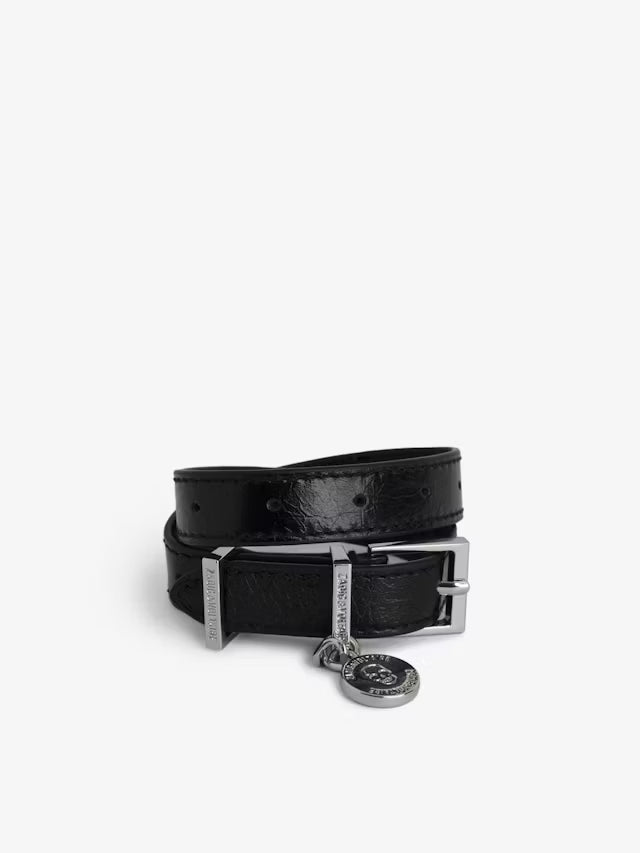 - Dámský náramek s dvojitým ovinutím z černé lakované kůže s vintage efektem