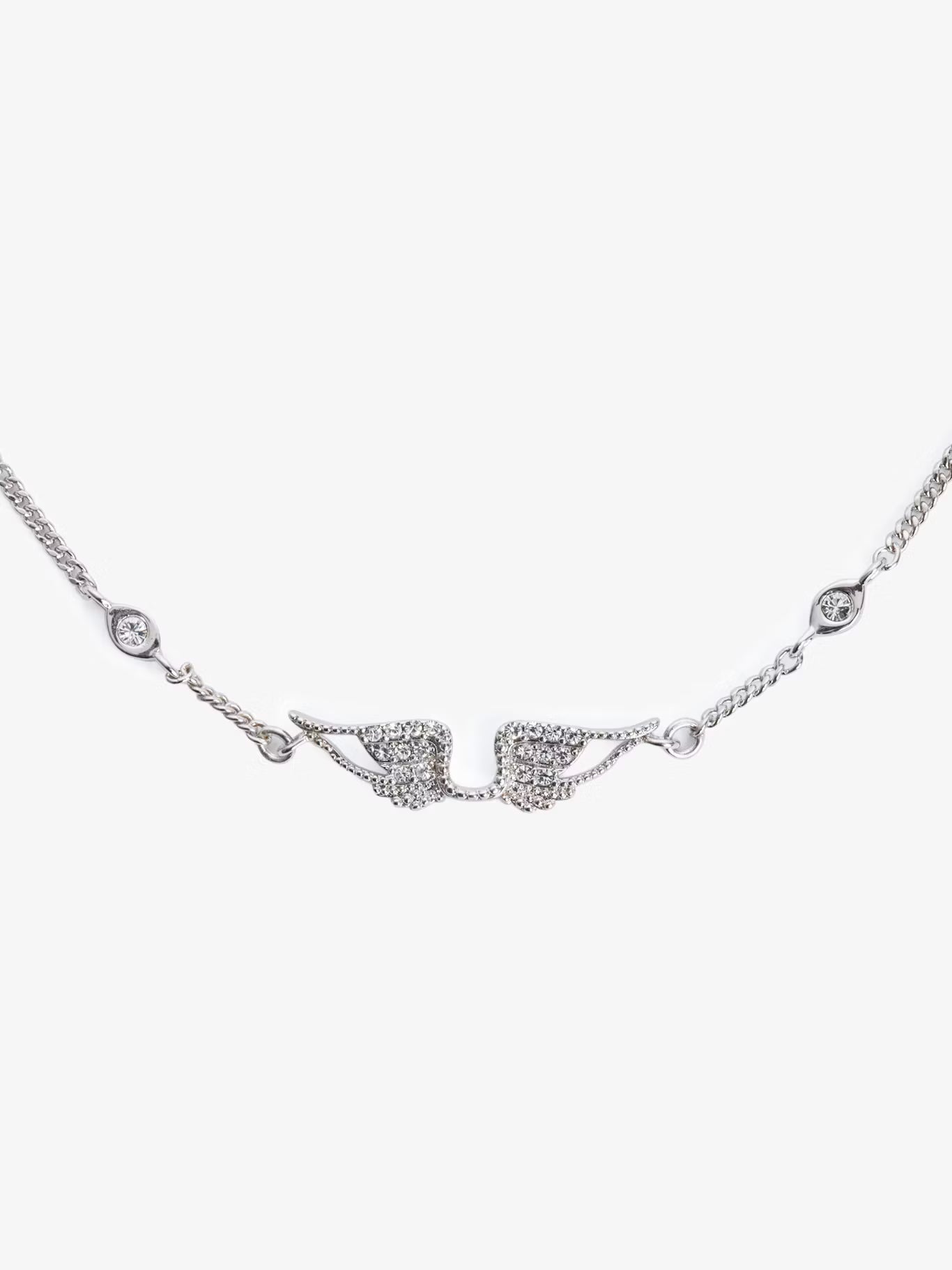Řetízkový náramek s křidélky z mosazi a kamínky.
