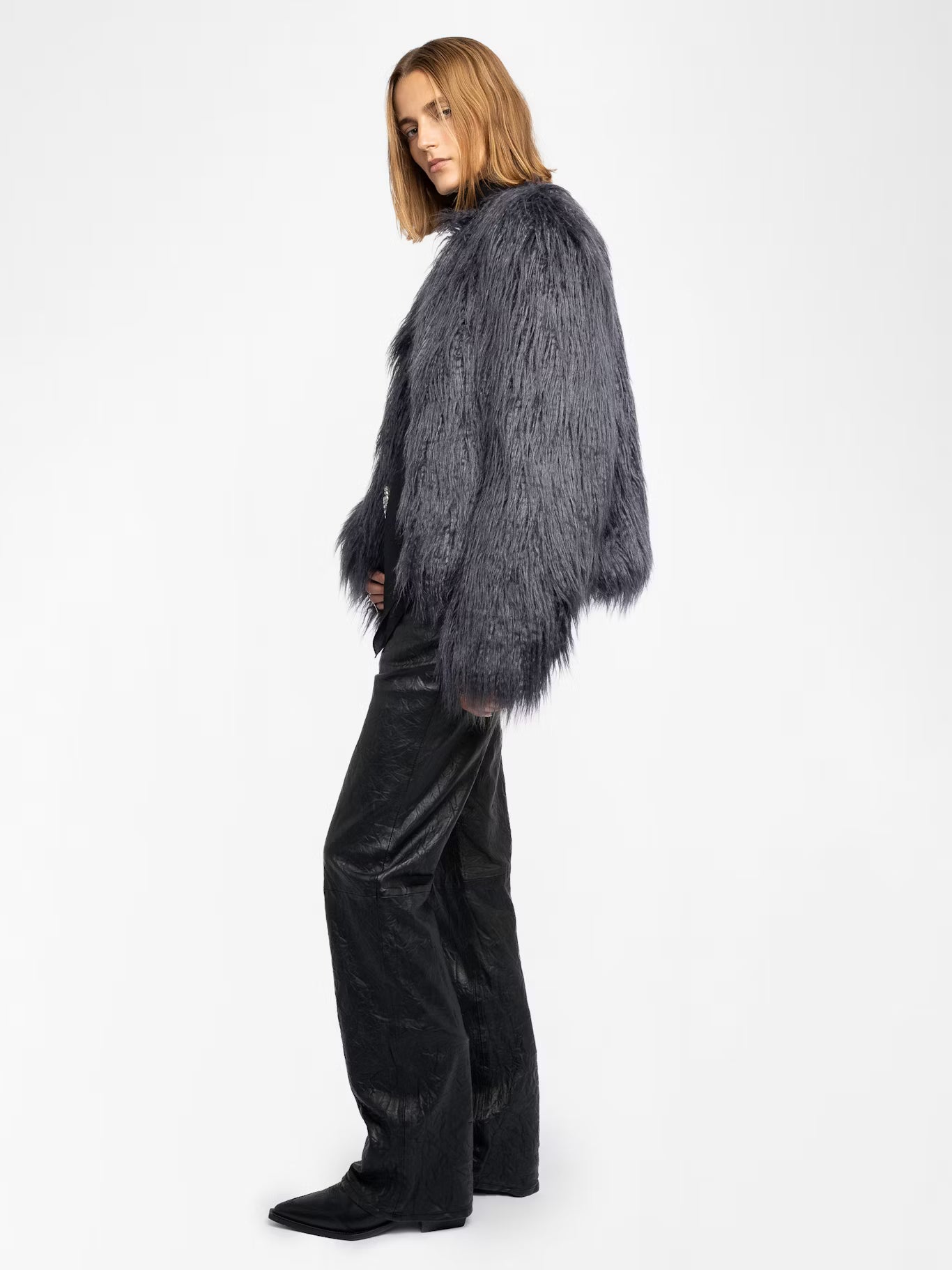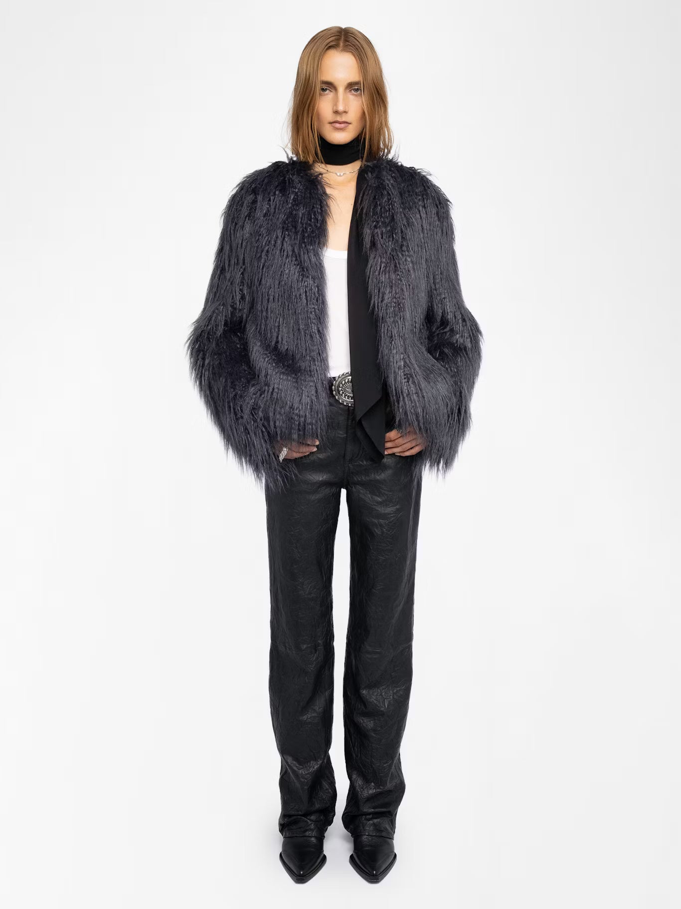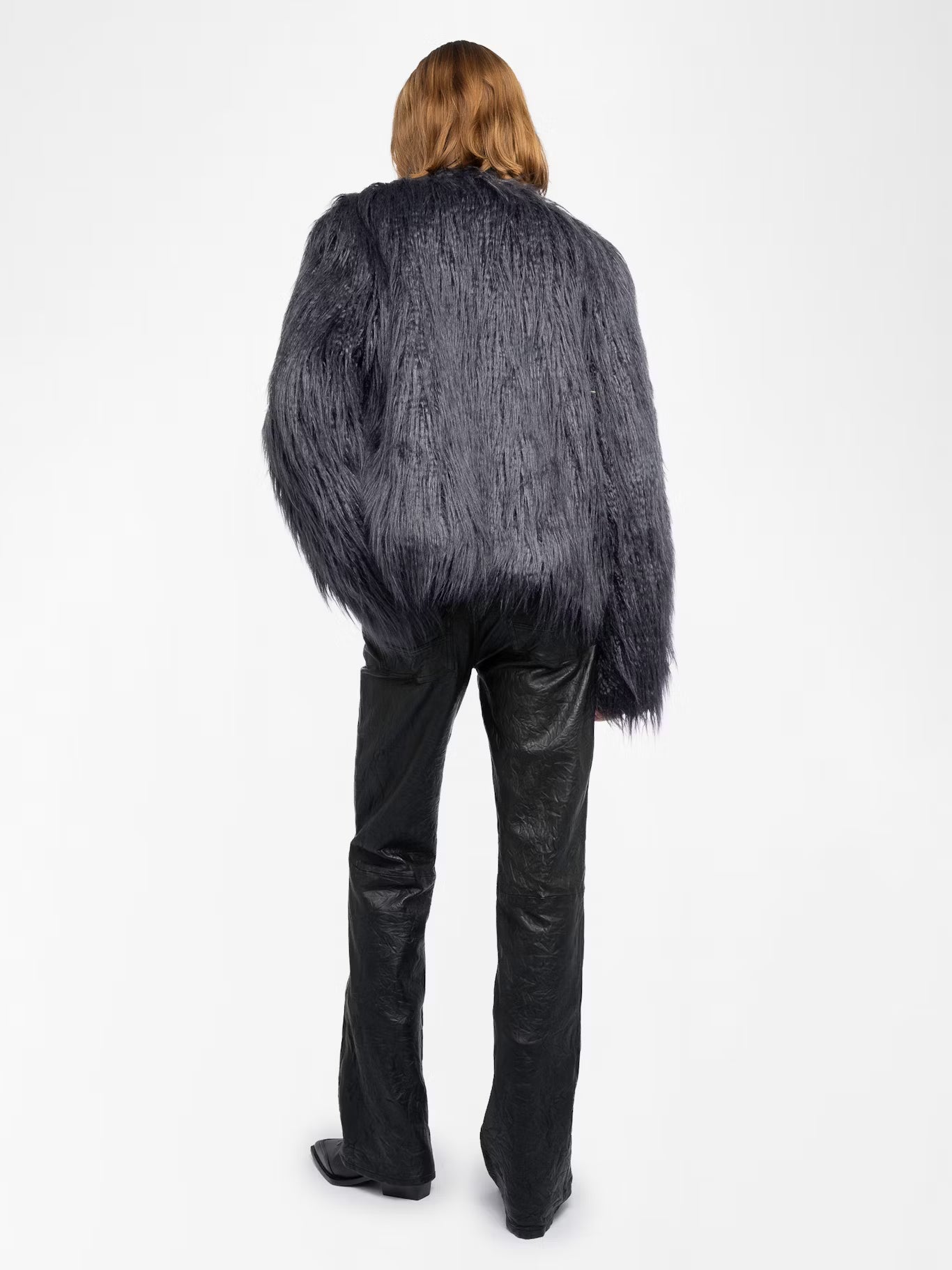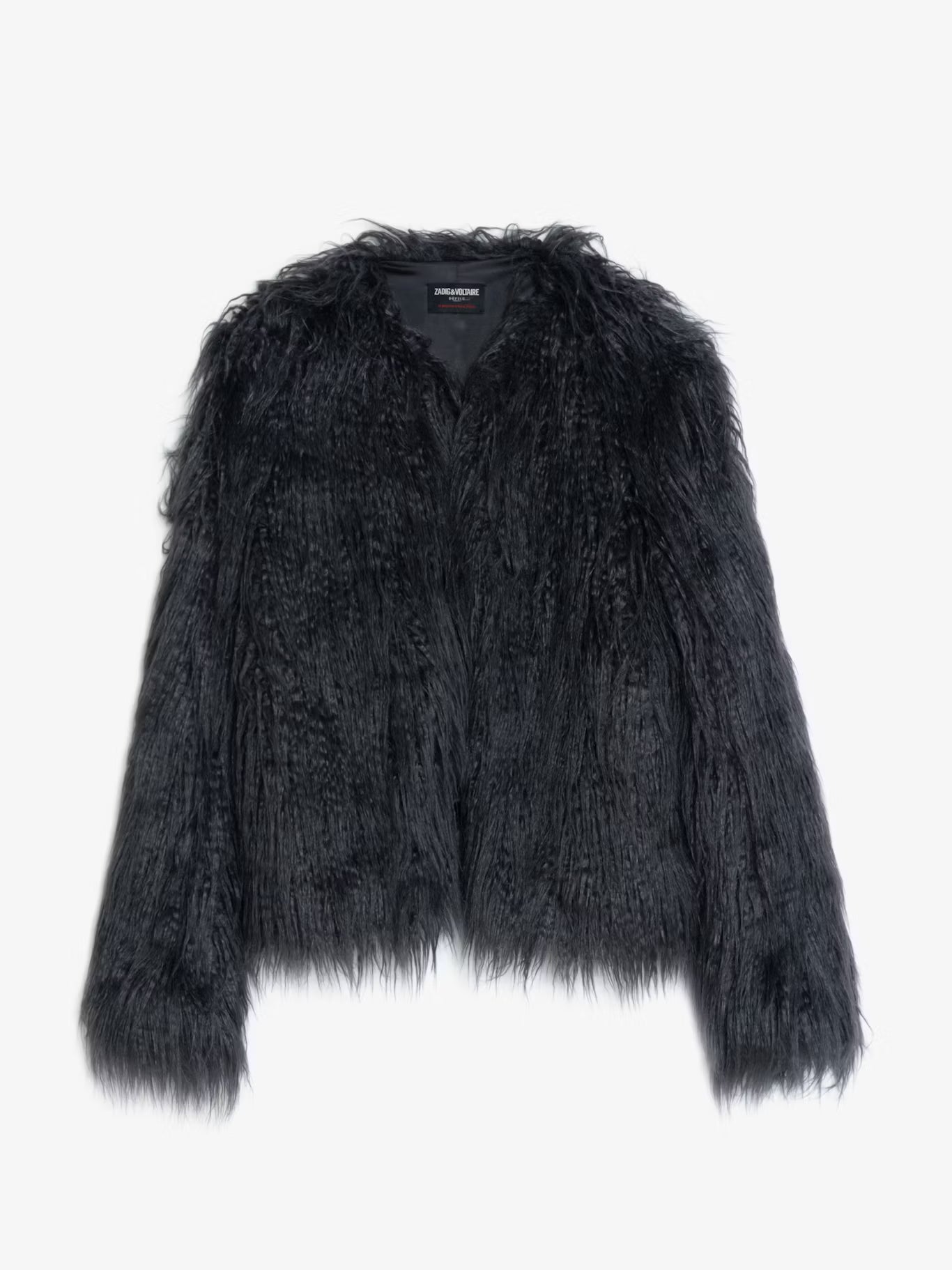 Kabát z kudrnaté umělé kožešiny s dlouhými rukávy.