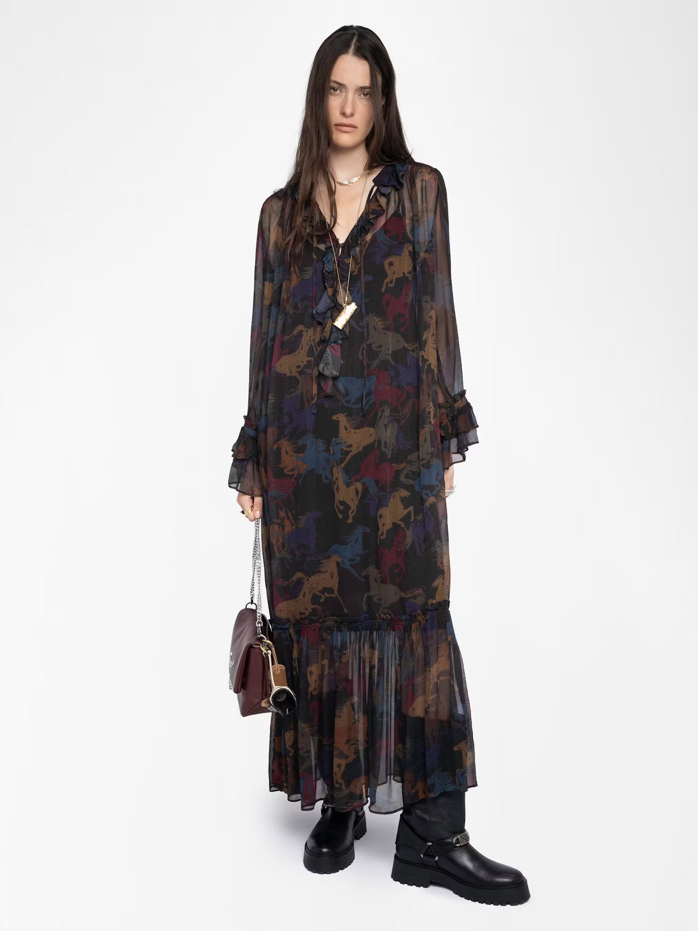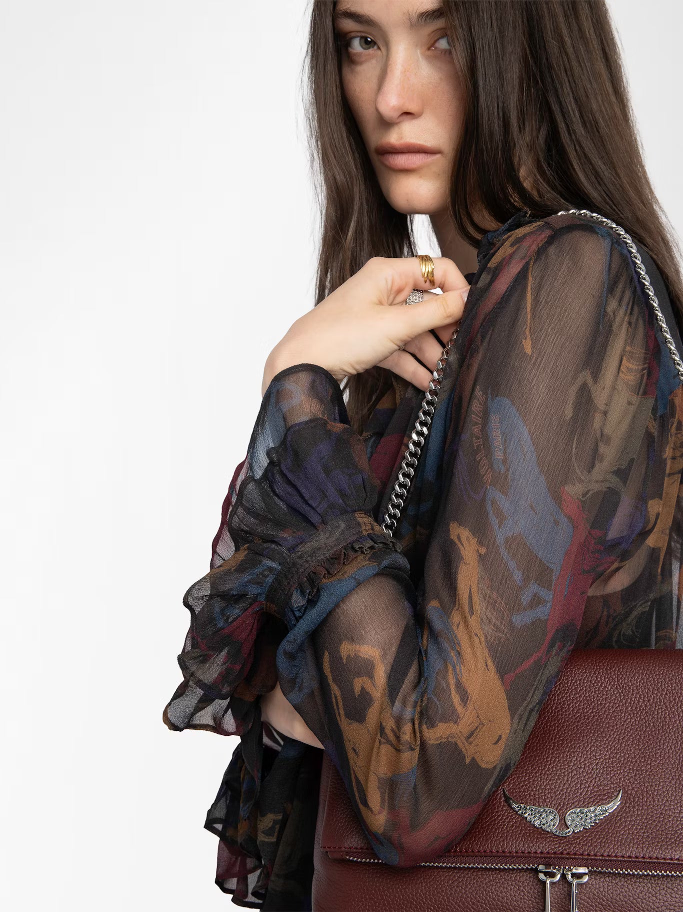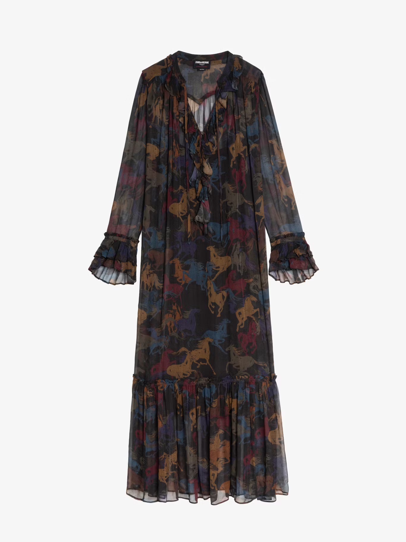 - Dlouhé splývavé rukávy s volánky