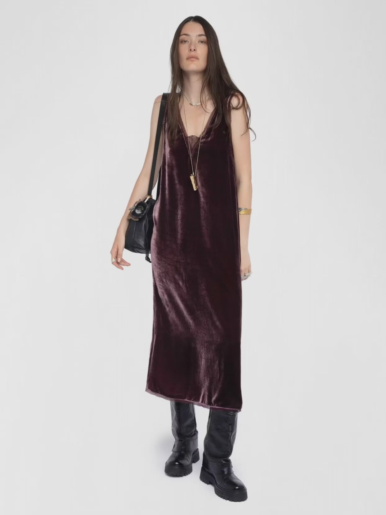- Dlouhé sametové šaty ve stylu spodního prádla