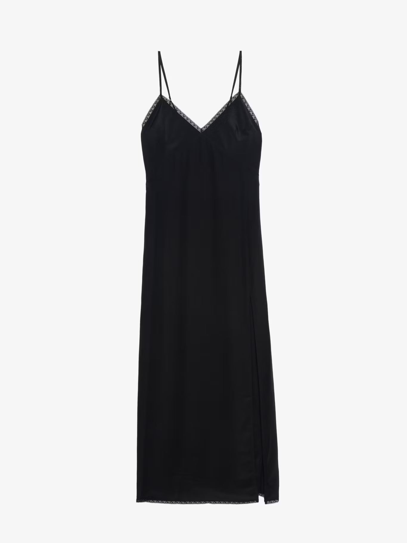 - Dlouhé černé šaty ve stylu spodního prádla pro ženy