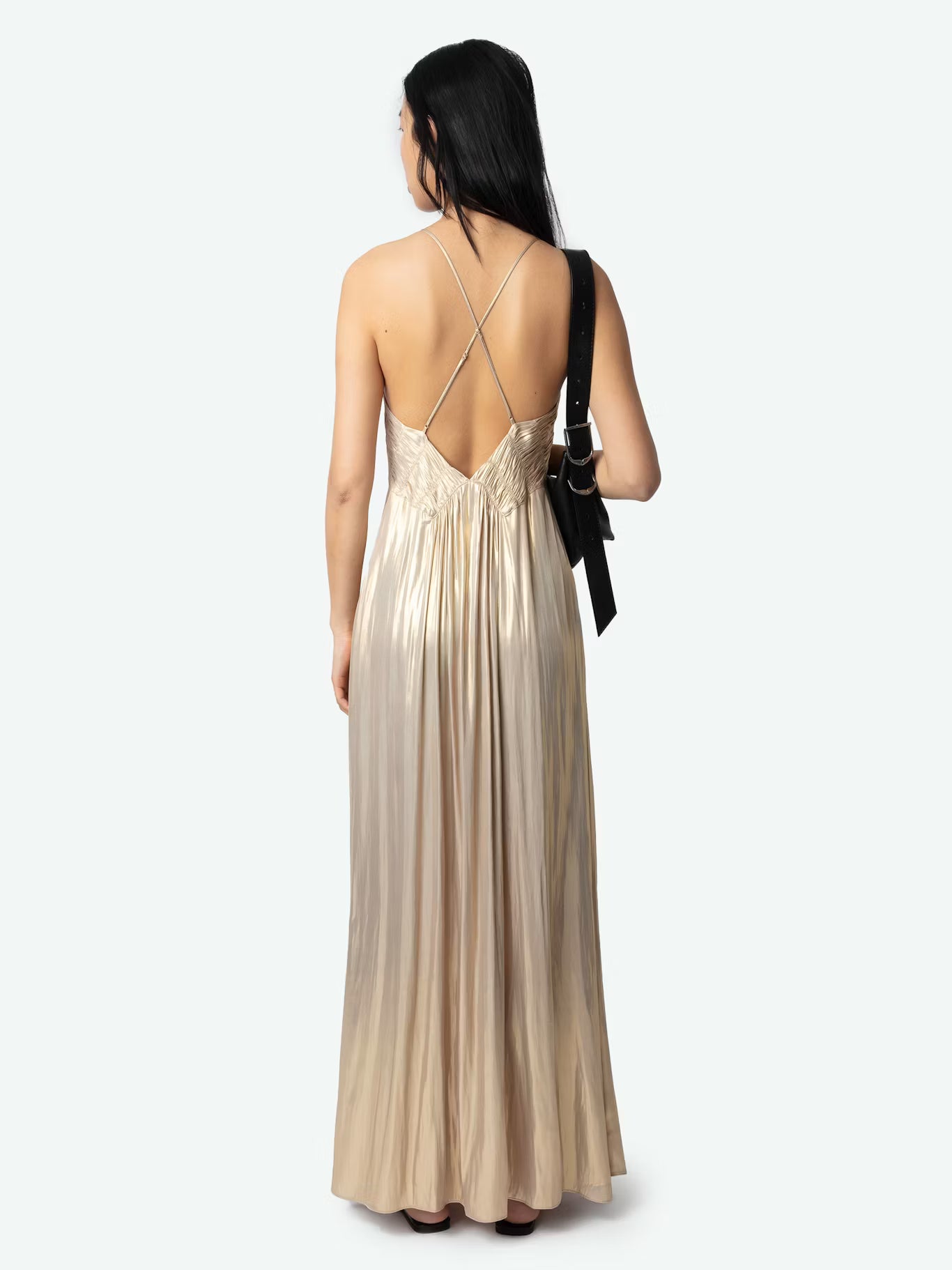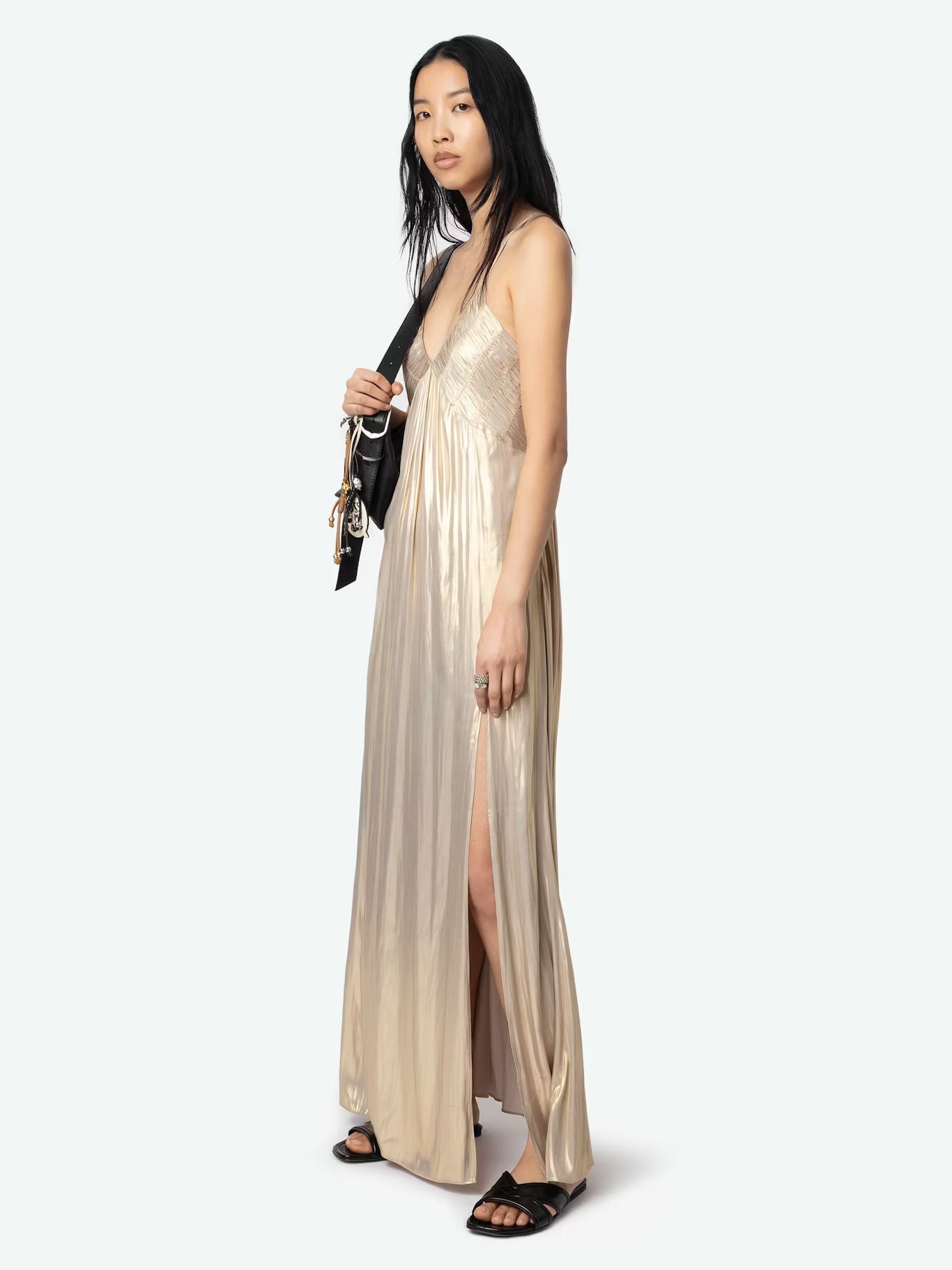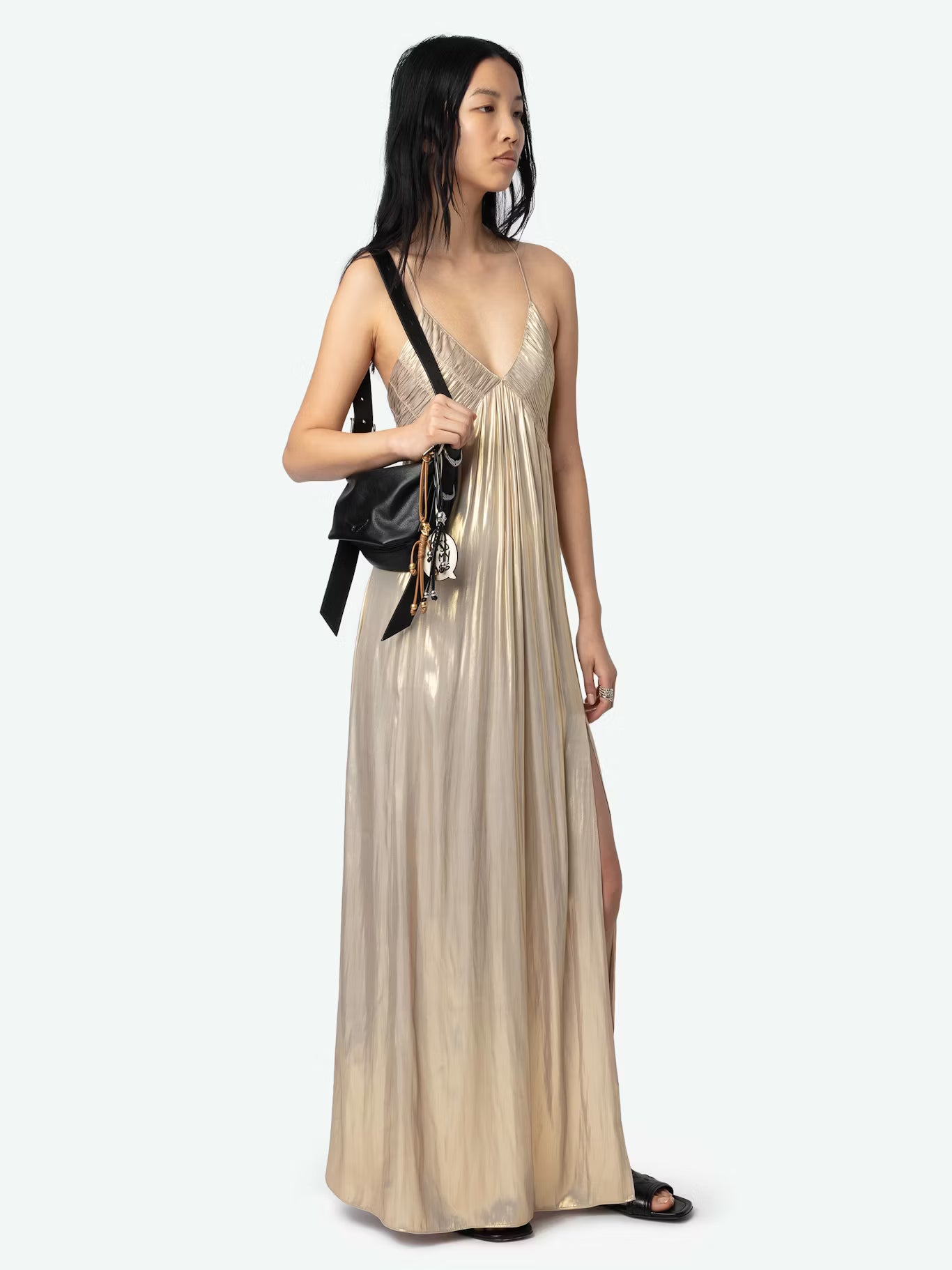 - Dlouhé skládané saténové šaty inspirované spodním prádlem
