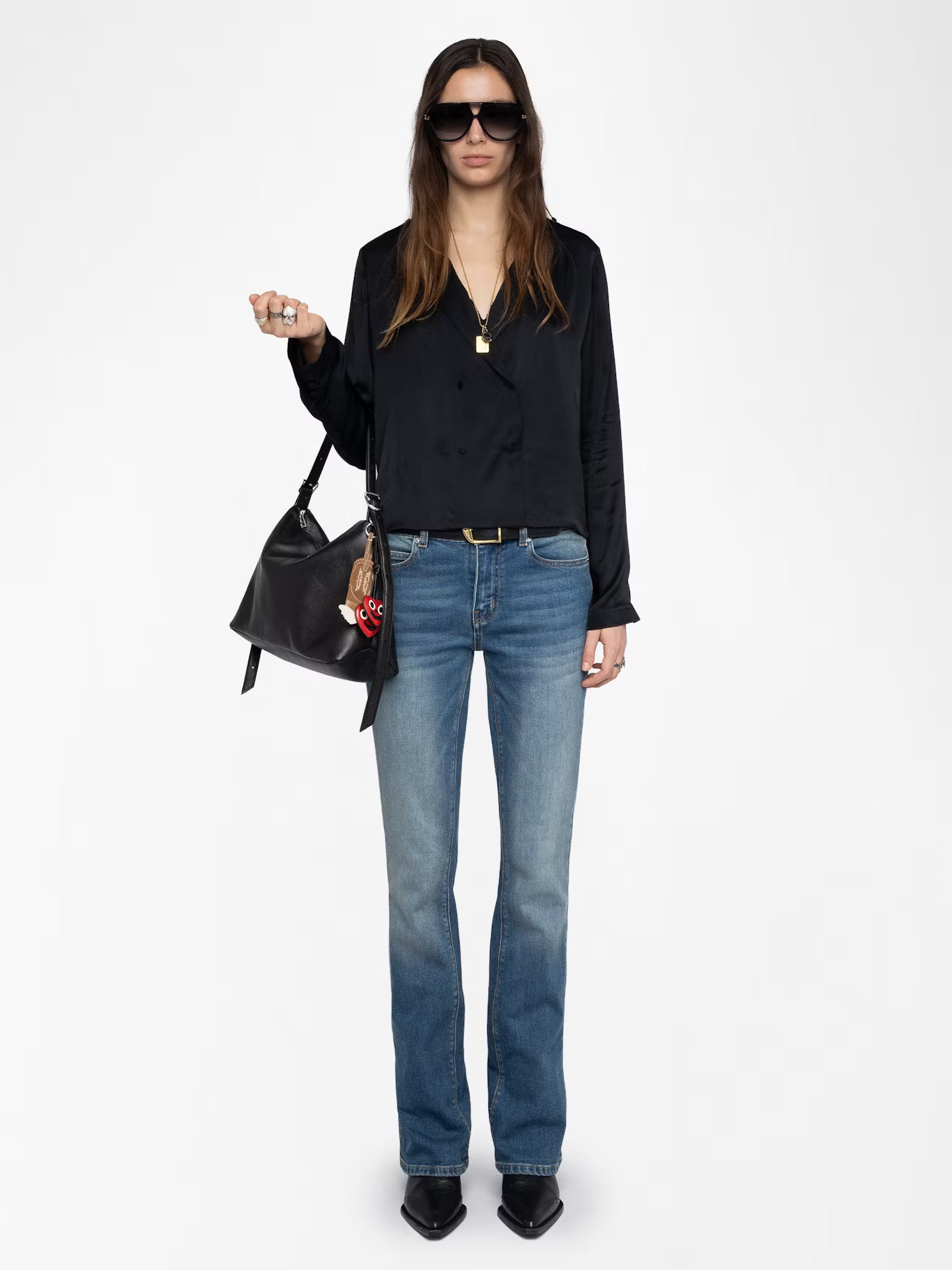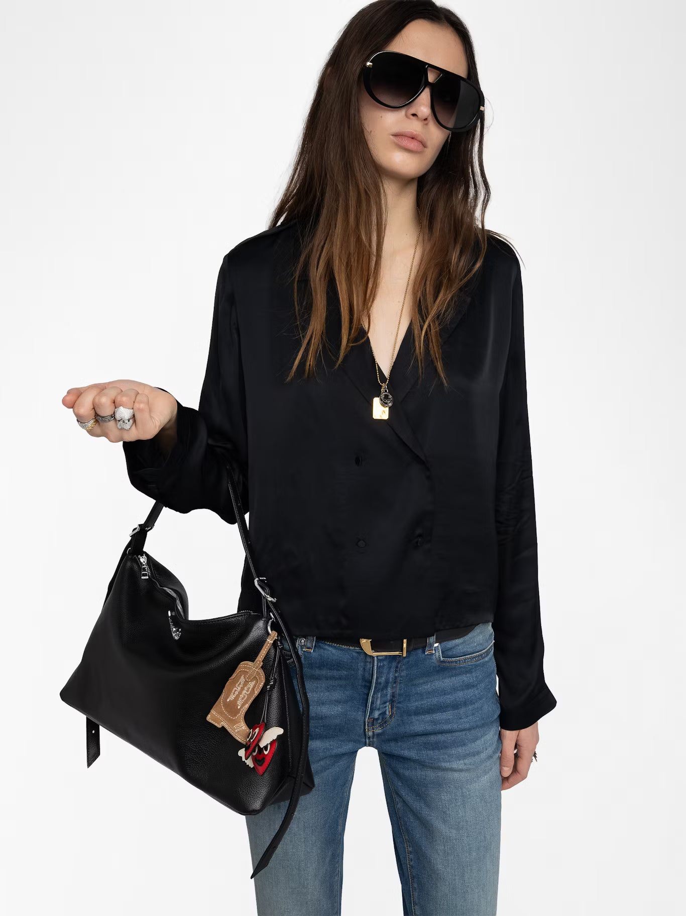 Modelka měří 178 cm a má na sobě velikost S.