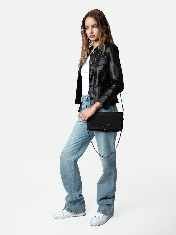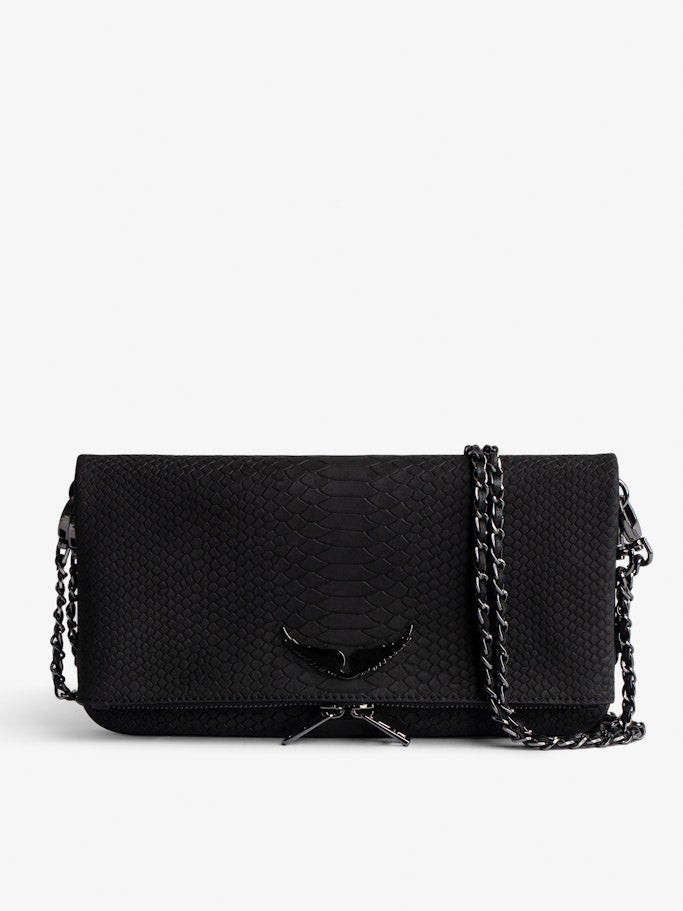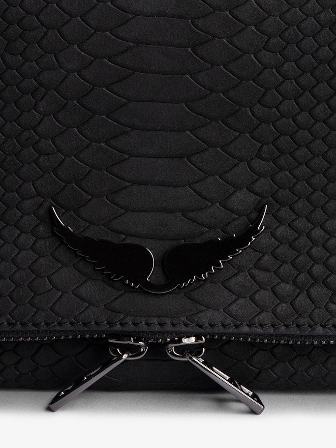 - Dámská kabelka Zadig&Voltaire Rock s hadím potiskem z černé kůže s efektem pythonu