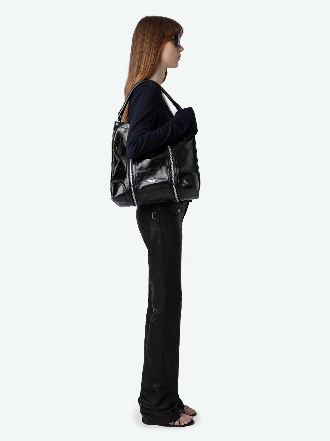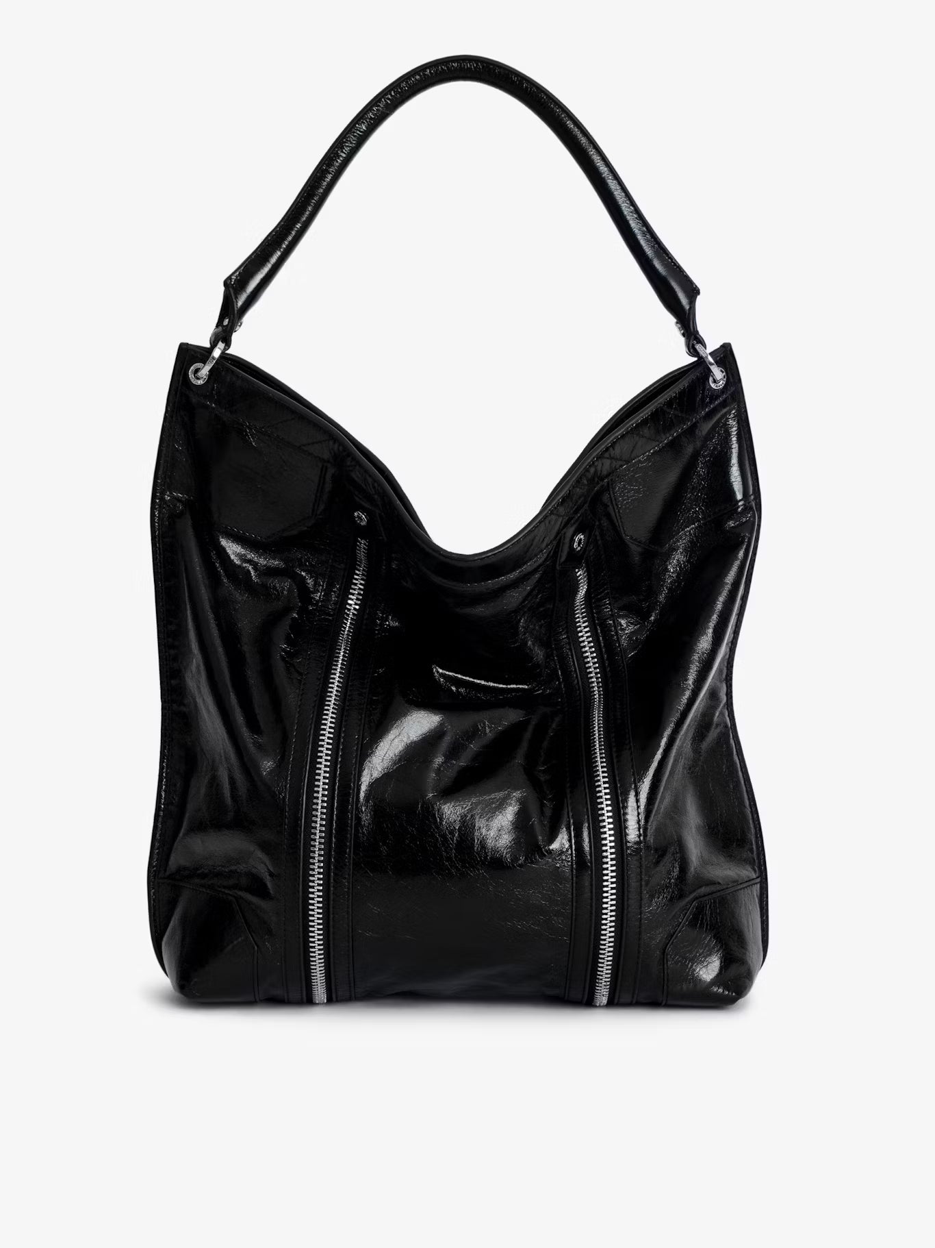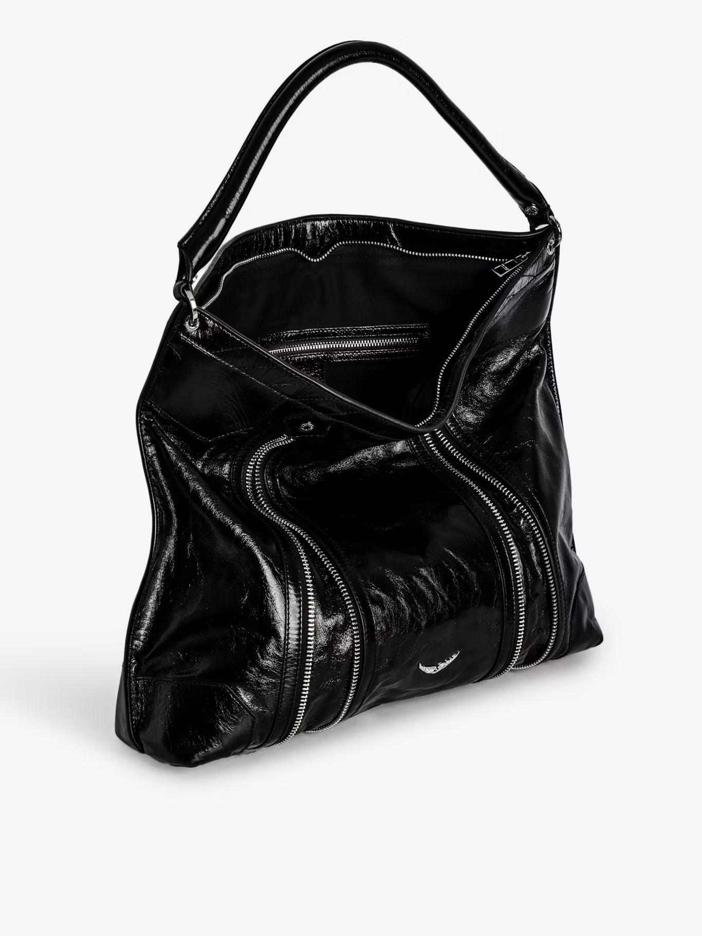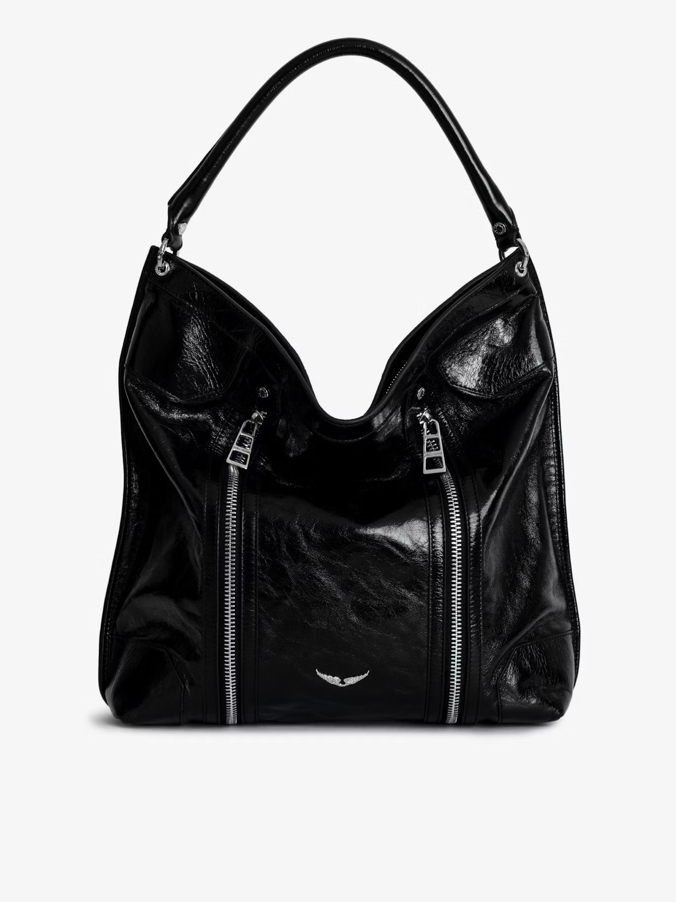 - Dámská kabelka Sunny Hobo z černé lakované kůže s vintage efektem