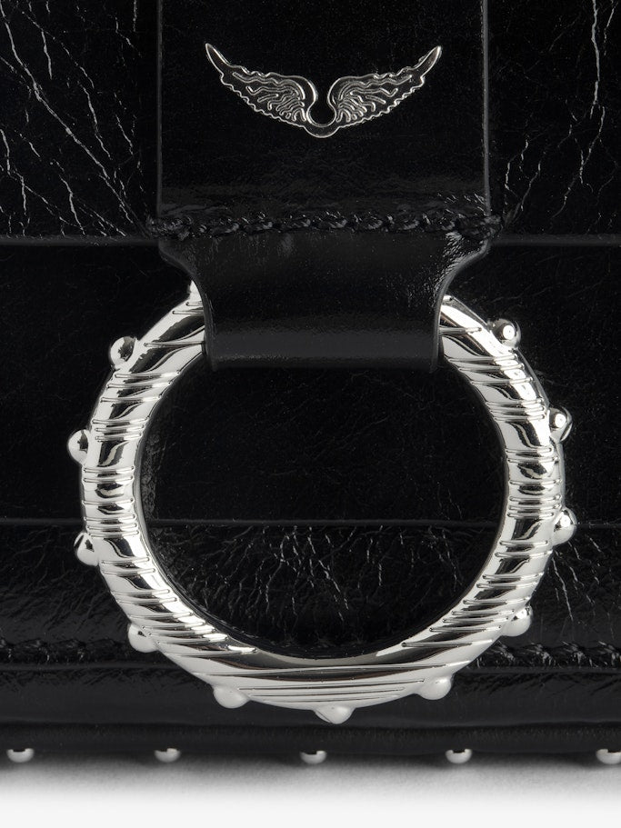Mini taška z kůže ve vintage stylu s kovovým kroužkem a řetízkem.