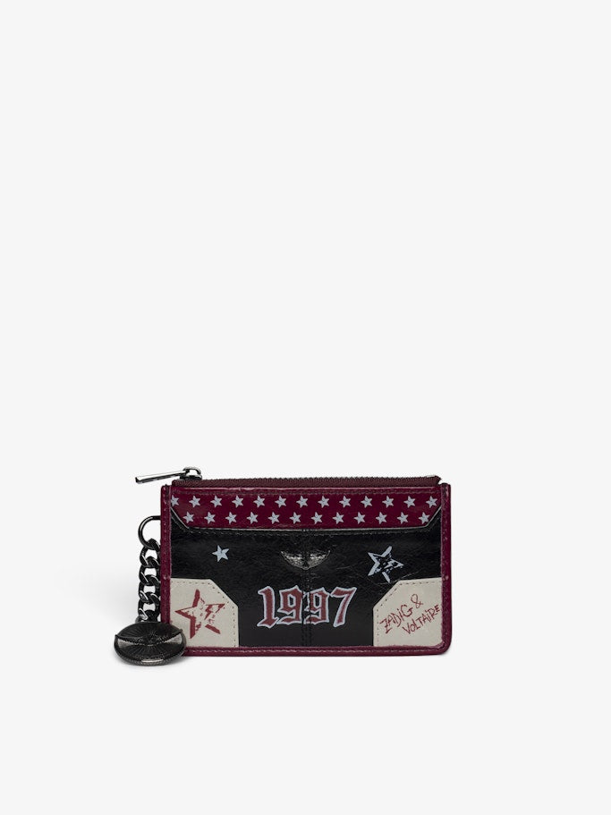 Držák na karty z lakované kůže ve vintage stylu, s medailonem a logy křídel.