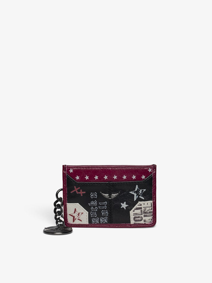 Držák na karty z lakované kůže ve vintage stylu, s přívěskem medailonu a logy křídel.