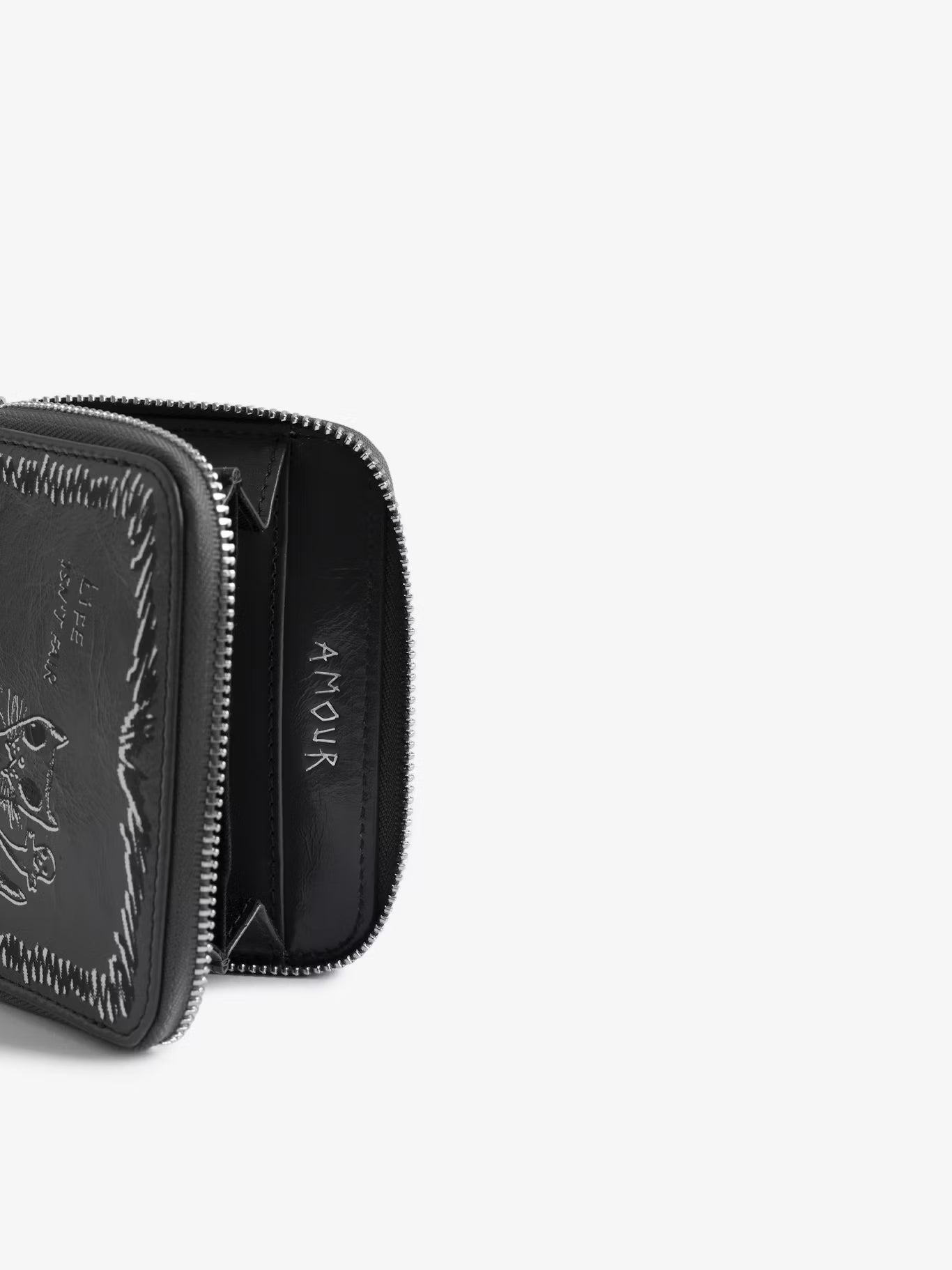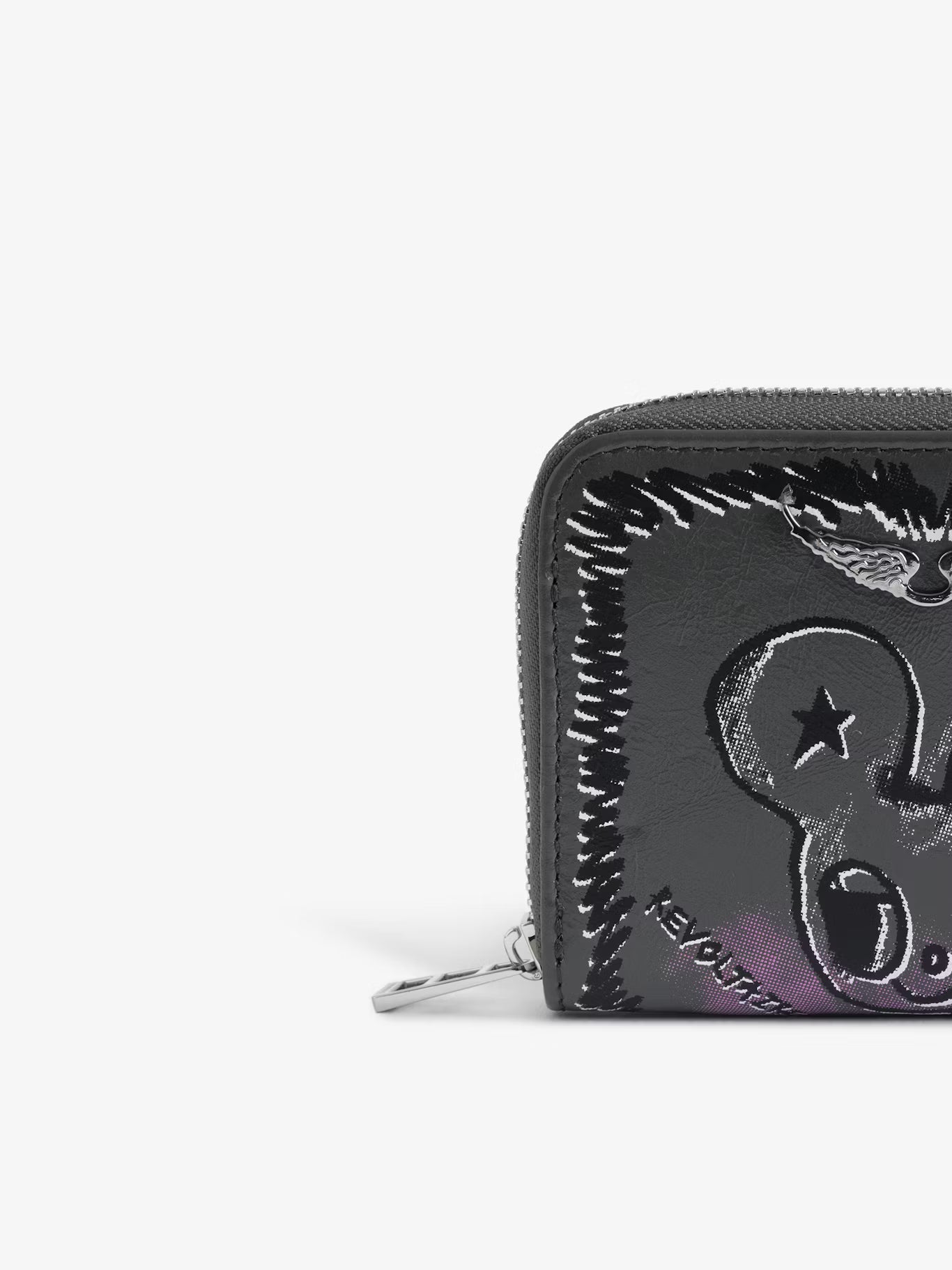 Mini peněženka ZV z kůže s texturou, signature křídel a potiskem Humberta Cruze.