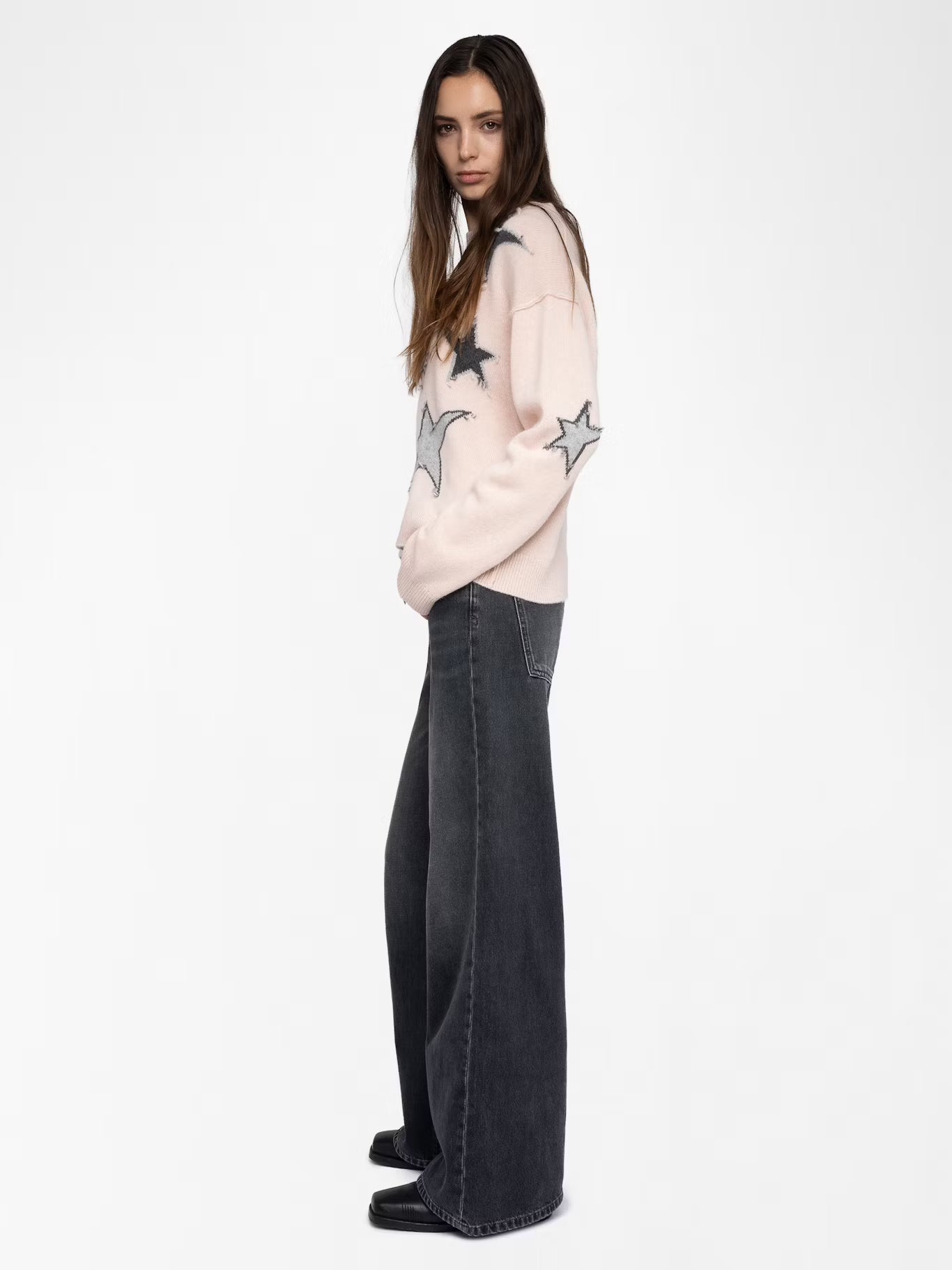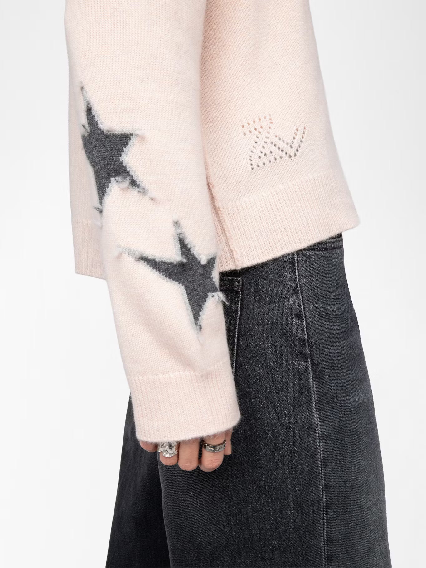 Svetr s kulatým výstřihem a intarzní hvězdou.