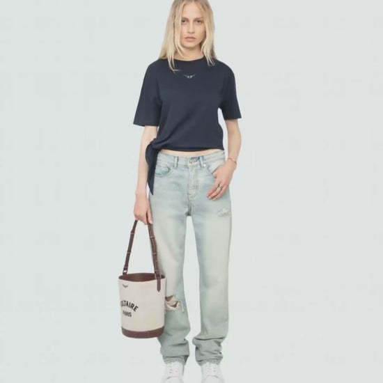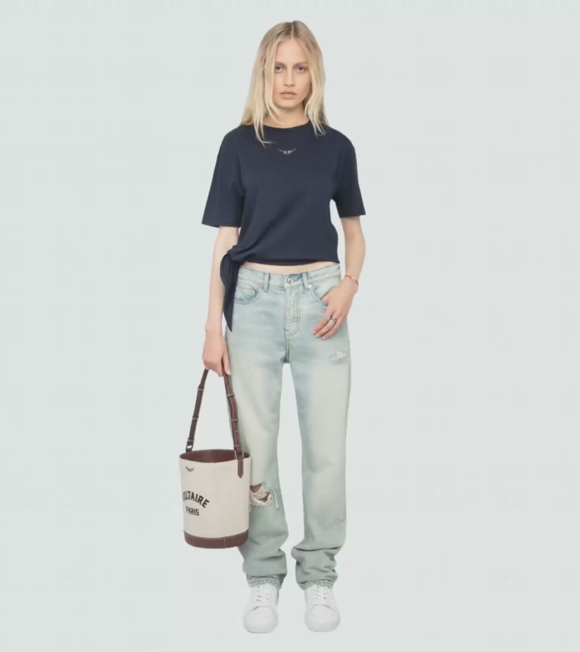 Modelka měří 175 cm / 178 cm a má na sobě velikost S. Tento kus má volný střih. Pro přiléhavější vzhled vyberte o jednu velikost menší, než je vaše obvyklá velikost.