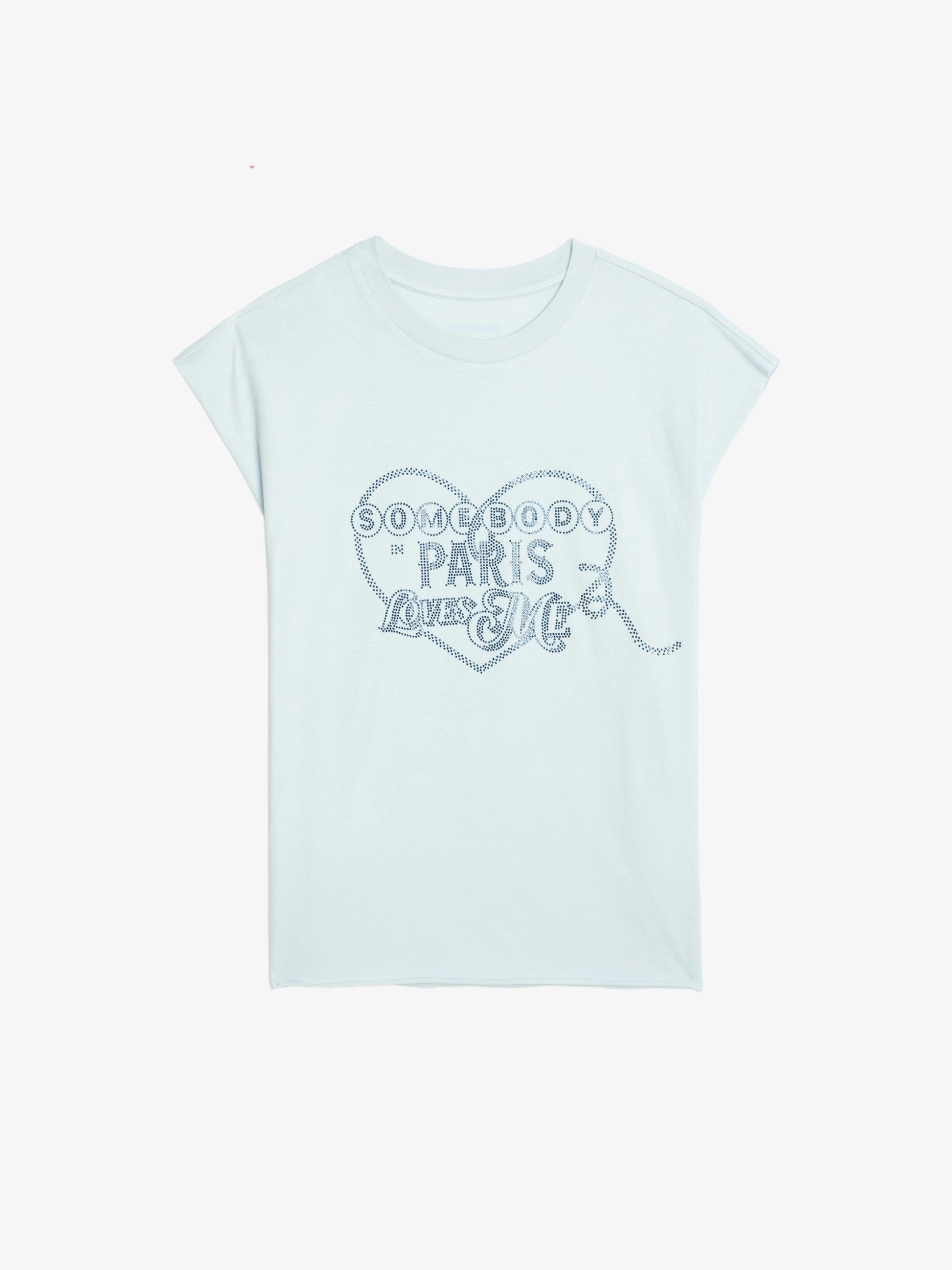 - Potisk s kamínky "Somebody in Paris Loves Me" na přední straně